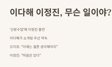 이정진과 이다해가 방송에서 보여준 소개팅 이야기와 연애 발언이 요즘 화제다.