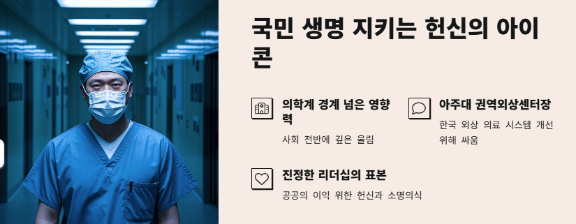 몇 년 전 아주대병원에서 가족 수술을 위해 병원을 오가던 시절, 저는 처음으로 ‘외상외과’라는 말을 제대로 알게 되었어요. 그 당시 응급실 대기 중 우연히 스치듯 지나가던 닥터헬기의 소리와 함께 보게 된 수술복 차림의 이국종 교수님. 그분의 존재는 저에게 생명을 다루는 직업의 무게를 처음으로 체감하게 했습니다.