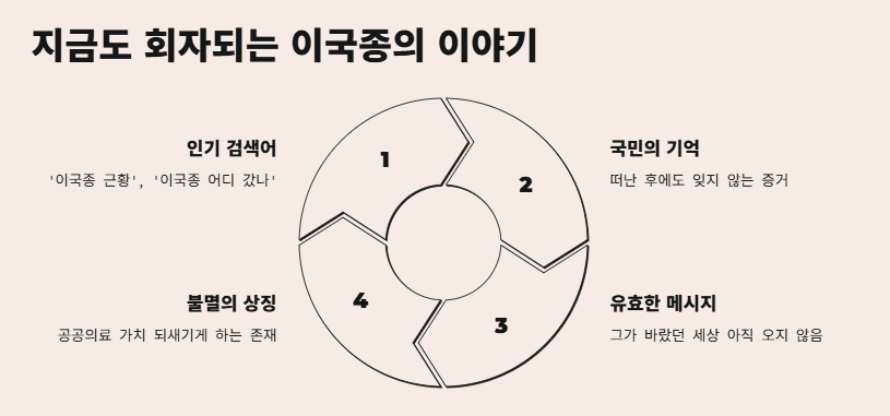 ‘이국종’이라는 키워드는 단순한 이름을 넘어, 희생과 책임, 용기의 상징으로 남아있다. 수많은 시민들이 그를 기억하는 이유는 단순히 유명인이기 때문이 아니라, 진짜 필요한 곳에서 목소리를 내고 몸을 던졌기 때문이다.