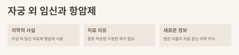 → 대한산부인과학회 자료에 따르면 자궁 외 임신 시 메토트렉세이트(항암제 계열) 치료가 일반적이다.