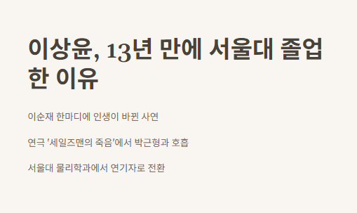 연기자 이상윤의 서울대 졸업 이야기, 나를 돌아보게 했다