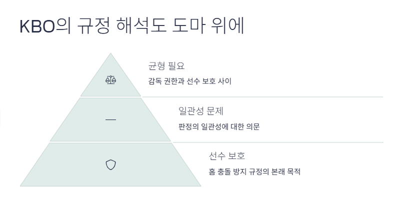 이번 사건은 KBO의 규정 해석과 판정의 일관성에 대한 의문을 제기합니다. 홈 충돌 방지 규정은 애초에 선수 보호를 목적으로 도입된 것이지만, 이승엽 감독 퇴장 사례처럼 경기 결과를 좌우할 수 있는 큰 변수로 작용할 수 있습니다.