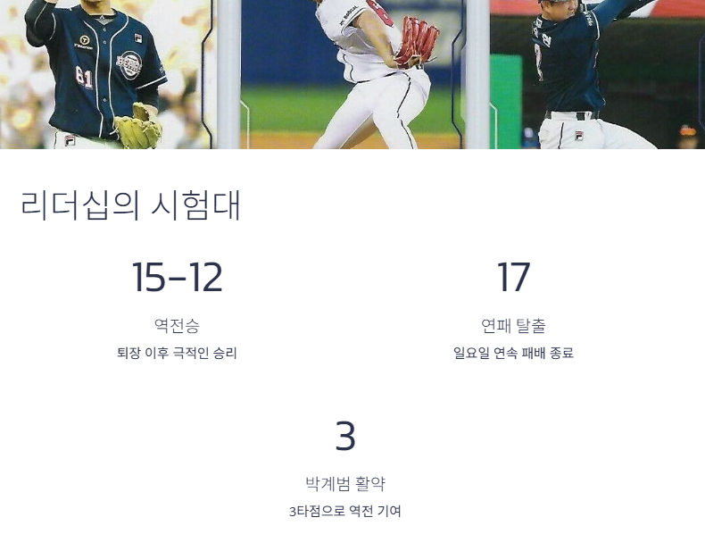 감독 퇴장은 언제나 팀에 큰 영향을 미칩니다. 하지만 이번 이승엽 감독 퇴장 이후 두산은 경기 막판 극적인 역전극을 연출하며 롯데를 15-12로 꺾었습니다. 17경기 연속 일요일 패배를 끝낸 것입니다. 이를 두고 일부 팬들은 “감독이 퇴장당하면서 오히려 팀이 똘똘 뭉쳤다”고 평가하기도 합니다.