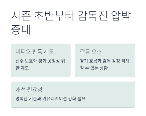 비디오 판독과 규정 해석 문제가 계속되는 한 유사 상황은 재현될 수 있습니다. 명확한 가이드라인이 필요합니다.