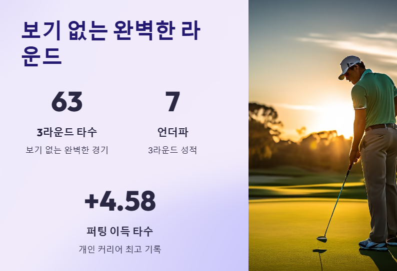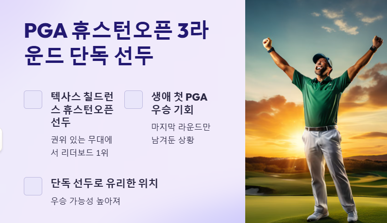 현재 3라운드까지 선두를 달리고 있어 마지막 라운드에서 승리할 경우 PGA 투어 첫 우승을 달성하게 됩니다.
