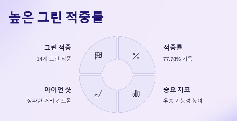 이번 경기에서 이민우는 총 14개의 그린을 적중시키며 77.78%의 높은 정확도를 기록했다. 이는 우승을 노리는 선수로서 중요한 지표다.
