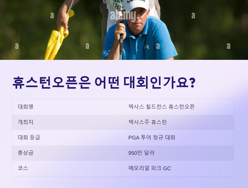 텍사스주 휴스턴에서 열리는 PGA 투어의 정규 대회 중 하나로, 총상금 950만 달러가 걸려있는 대형 이벤트입니다.