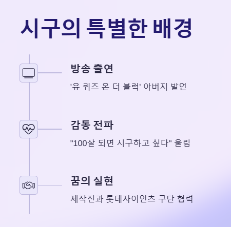 문소리가 출연했던 ‘유 퀴즈 온 더 블럭’에서 아버지 문창준 씨는 “100살이 되면 사직야구장에서 시구하고 싶다”고 말했습니다. 그 장면은 짧지만 큰 울림을 주었고, 제작진과 롯데자이언츠 구단도 해당 꿈을 응원하며 실제 이벤트로 성사시킨 것이죠.