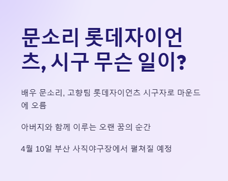 ‘문소리 롯데자이언츠 시구’라는 키워드는 이제 단순한 검색어가 아닌 상징이 되었습니다. 팬심, 가족애, 그리고 고향에 대한 애정이 어우러진 이 이벤트는 광고가 아닌 삶 그 자체를 보여주는 하나의 이야기입니다.