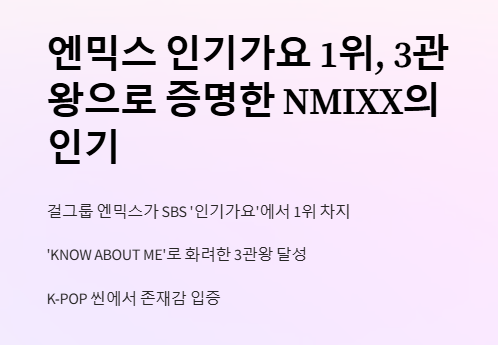 이로써 ‘엔믹스 인기가요 1위’는 다시 한 번 NMIXX의 저력을 과시한 순간으로 기록되었다.