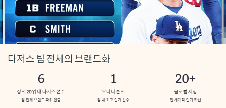 다저스 상위 20위 중 6명…팀 전체의 브랜드화