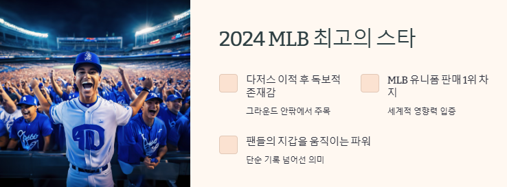오타니가 기록한 유니폼 판매 1위는 단순한 마케팅 성공 사례를 넘어선다. 그는 일본, 미국, 한국 등 전 세계 야구팬들에게 ‘믿고 보는 선수’라는 인식을 심어주었고, 그 결과 유니폼 구매로도 이어졌다.