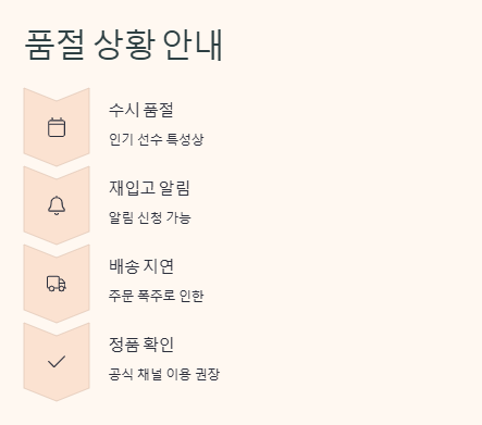 인기 선수라 수시로 품절되며, 재입고 알림 신청이 가능합니다.