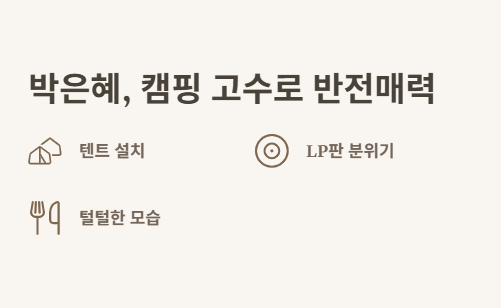 박은혜 배우, 캠핑 고수로 완전 반전매력 터짐