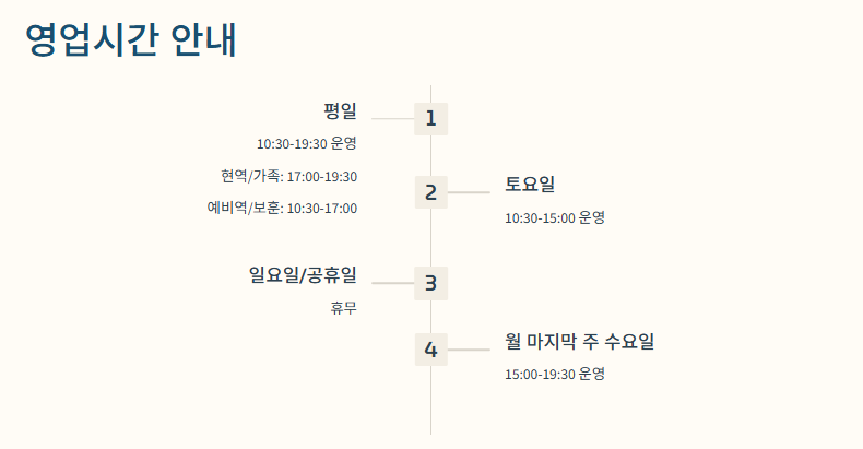 예비역이나 보훈 대상자들은 10:30부터 17시까지만!