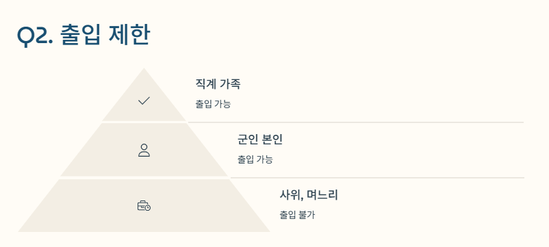 - 국군복지포털 앱 인증 필수, 군인 가족 신분만 출입 가능