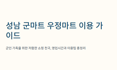 경기도 성남에 있는 군 전용 마트인 '우정마트'는 저렴한 가격과 다양한 제품으로 군인 가족 사이에서 인기가 높아요. 하지만 영업시간이 조금 복잡하고 대기 시간이 길어 처음 가는 분들은 혼란스러울 수 있어요. 이 글에서는 제가 직접 다녀온 성남 군마트 우정마트 후기를 중심으로, 정확한 영업시간과 이용팁까지 알려드릴게요!