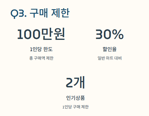 있어요. 1인당 100만원 이내, 인기 상품은 구매 제한 걸려 있어요.
