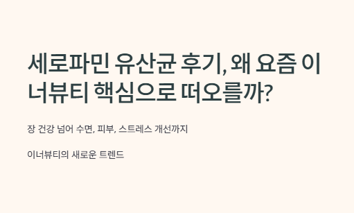 - 세로파민 유산균이 뭐길래 이너뷰티 대세로 떠오른 걸까?