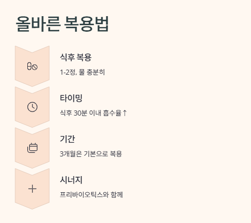 - 공복보다는 식후 30분 이내가 흡수율↑