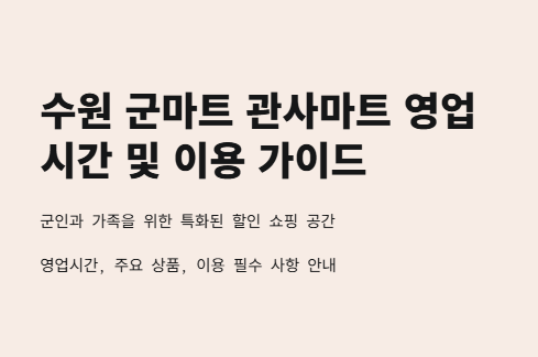 수원 군마트, 특히 국군복지단 관사마트는 군인들과 그 가족들에게 특화된 할인 쇼핑 공간으로 인기 있는 장소입니다. 이번 글에서는 수원 군마트의 영업시간, 주요 상품, 그리고 군마트를 이용하는 데 필요한 사항들을 자세히 살펴보겠습니다.