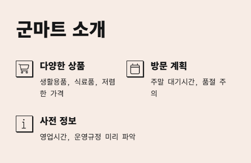 군마트 주요 상품 정리