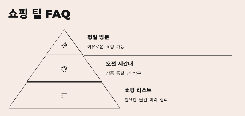 A5. 주말에 방문할 경우 물건이 빠르게 소진되므로 평일에 방문하거나 오전 시간대에 가는 것이 좋습니다.