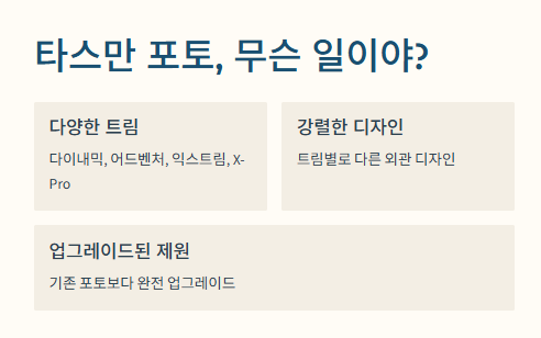 다양한 트림별 가격과 옵션, 유지비까지 확인 가능! - 2025 타스만 특징과 장점