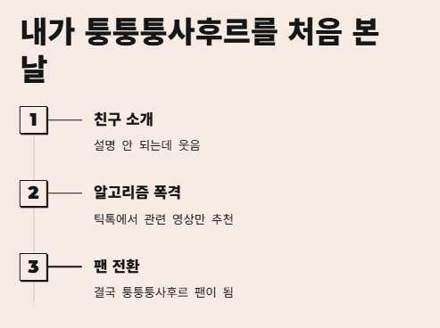 어느 날 친구가 "야, 퉁퉁퉁사후르 알아?" 하면서 영상 보여줬는데, 진짜 설명도 안 되는 느낌? 근데 저도 모르게 웃고 있었어요. 바로 그날 밤, 틱톡 알고리즘이 퉁퉁퉁사후르 관련 영상만 미친 듯이 보여주기 시작... 결국 저도 덩달아 "퉁퉁퉁사후르" 팬이 되어버림.