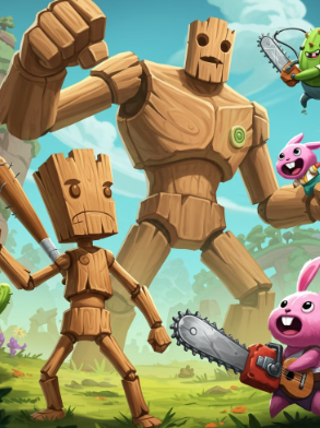 나무토막처럼 생긴 캐릭터가 야구방망이를 들고 등장하는, AI 기반 생성 밈.