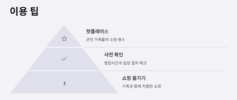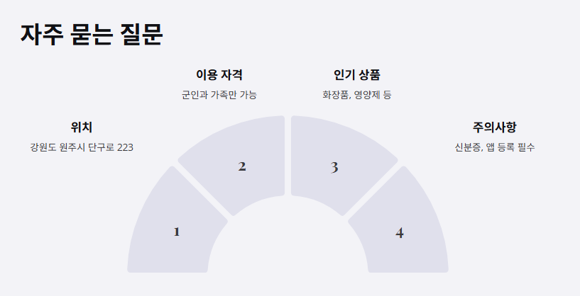 치악마트는 다양한 상품을 저렴하게 구매할 수 있는 군인 가족들의 핫플레이스랍니다. 방문 전 영업시간과 입장 절차를 잘 확인하고, 가족들과 즐거운 쇼핑을 즐기세요!