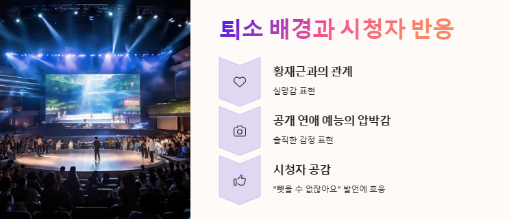 유혜원이 프로그램을 떠나게 된 배경은 복합적이다. 황재근과의 관계에서 느낀 실망감, 그리고 공개 연애 예능이라는 구조에서 오는 압박감이 그녀의 선택에 영향을 미쳤다는 분석이 있다. 그녀는 “뺏을 수 없잖아요”라는 말로 자신의 감정을 솔직히 전했고, 이는 오히려 시청자들의 공감을 샀다. 유혜원 퇴소 이후 근황과 차기 활동 정리를 통해 그녀의 성숙한 선택을 이해할 수 있다.